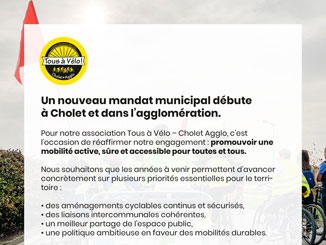 Pour notre association Tous à Vélo – Cholet Agglo, c’est l’occasion de réaffirmer notre engagement : promouvoir une mobilité active, sûre et accessible pour toutes et tous. Nous souhaitons que Lire la suite
