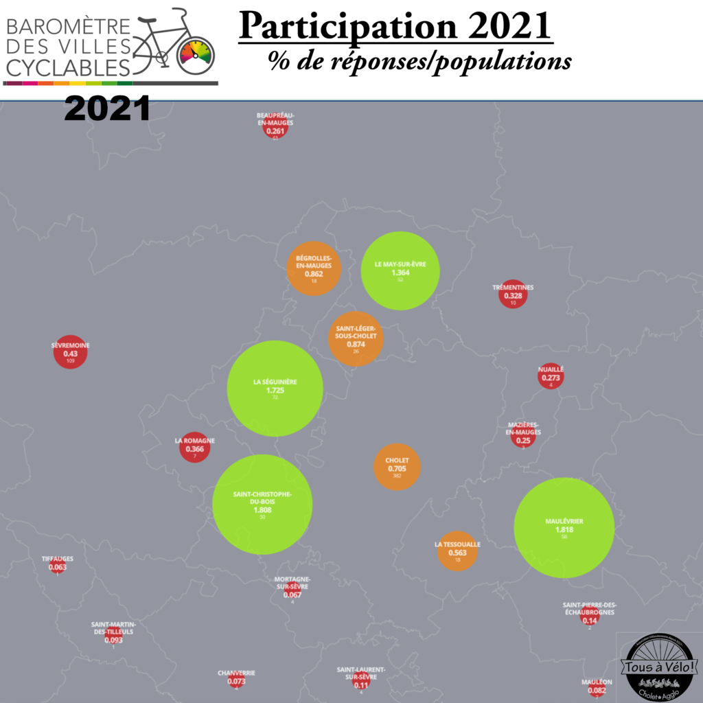 D’autres communes aux alentours obtiendront également une note : Beaupréau (61 réponses), Chemillé-En-Anjou (67) et Sèvremoine (109).