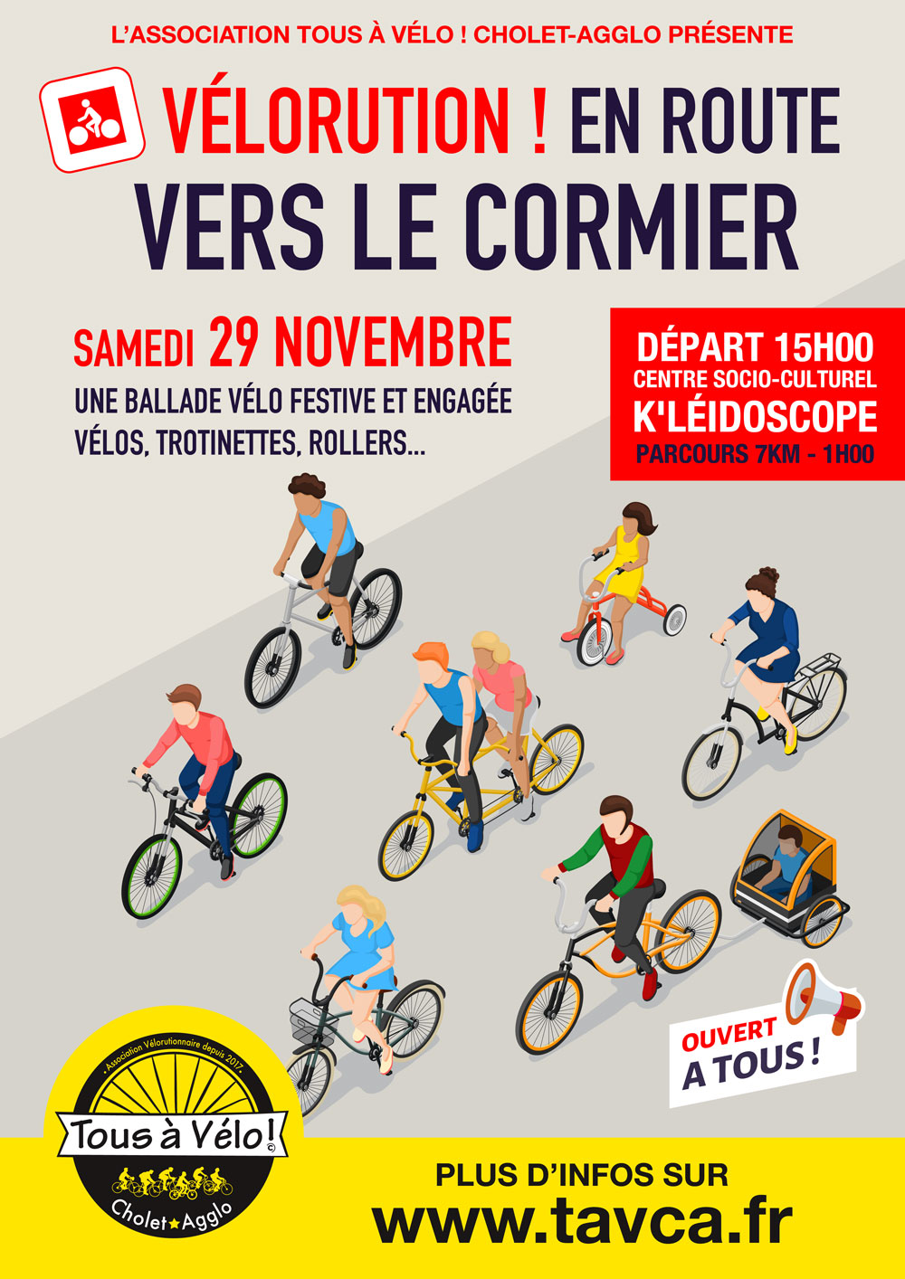 - Ouvert à tous : vélos, remorques, rollers, trottinettes…